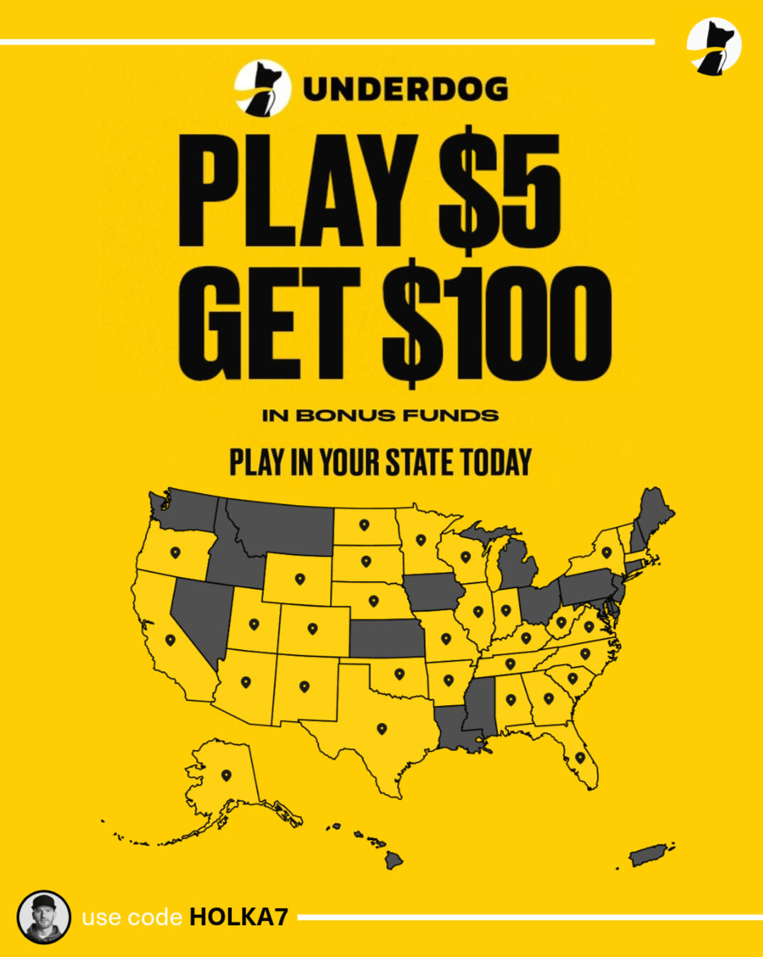 Play $5, Get $100 on Underdog when you use code HOLKA7.